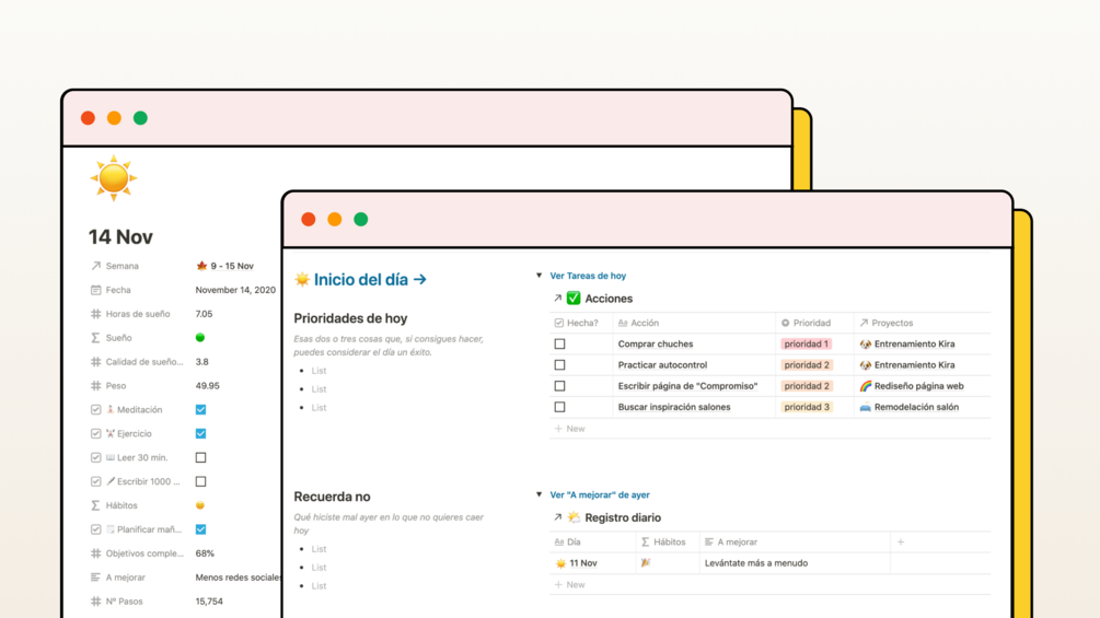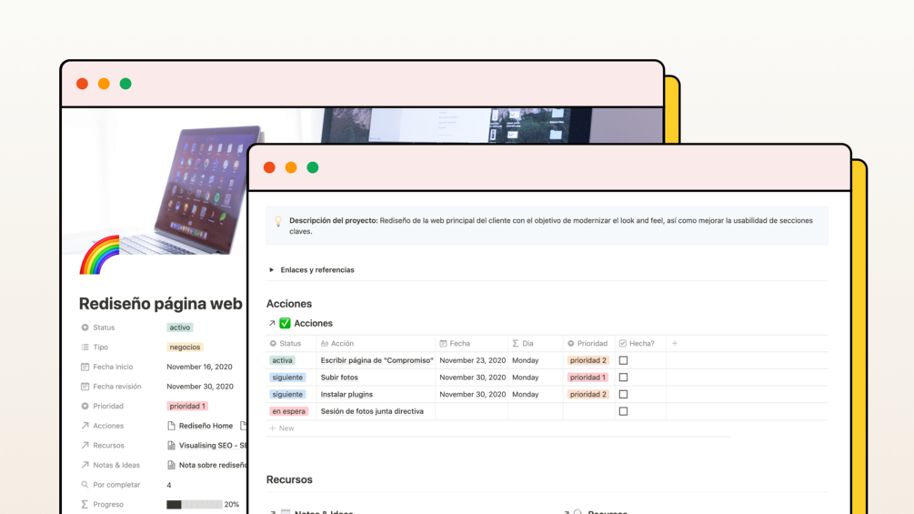 Este pack reúne todos los templates utilizados en los videos de aprendenotion.com, para que puedas empezar a sacar partido a estas herramientas desde el principio sin preocuparte por tener que configurarlas.